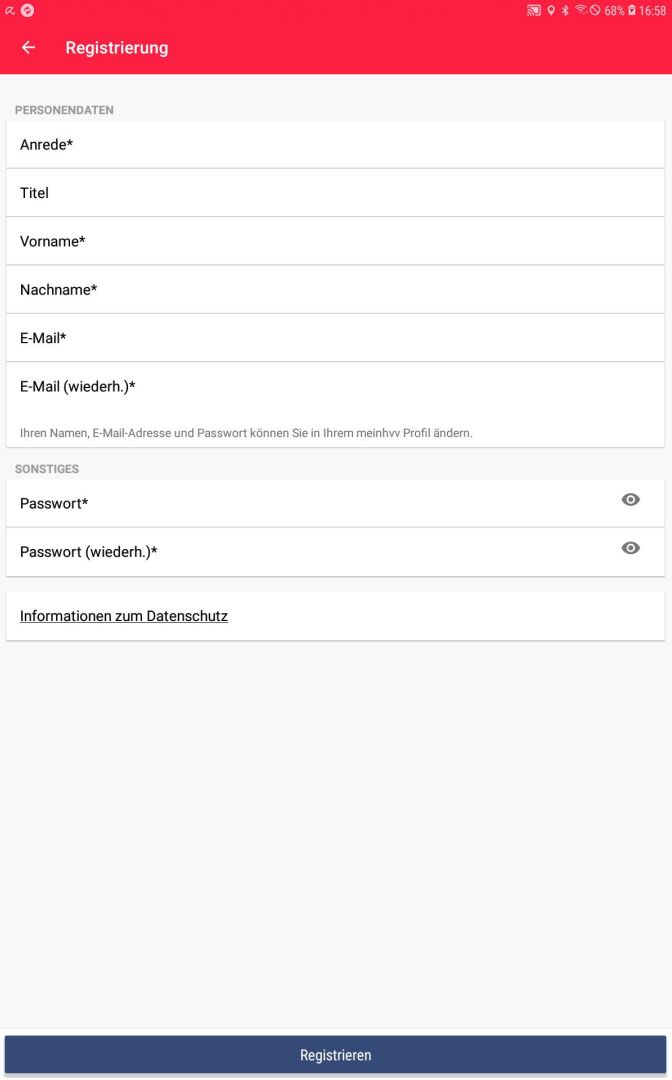 Anlegen eines Kontos in der HVV App