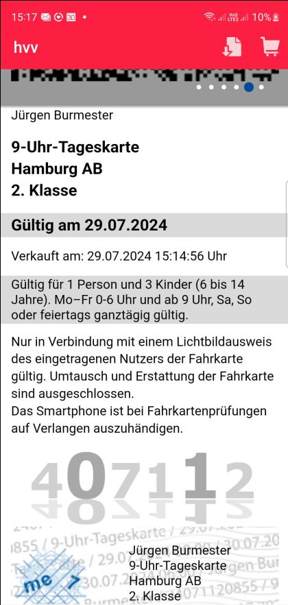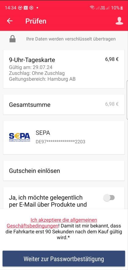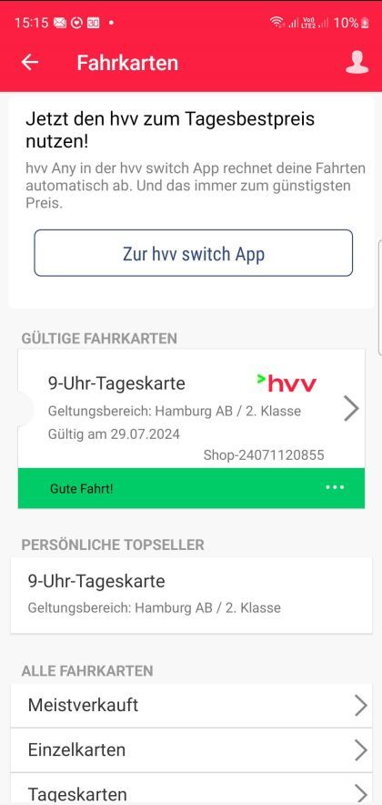 Fahrkartenkauf in der HVV-App